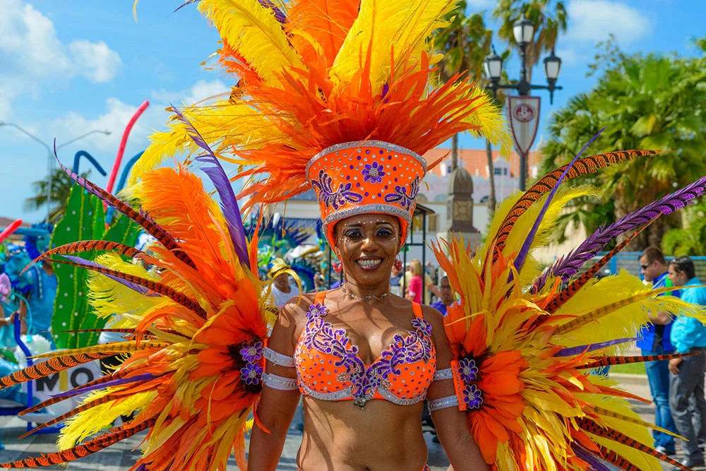 Portrait of woman during Carnival on Llyod G. Smith Boulevard in Oranjestad, Aruba