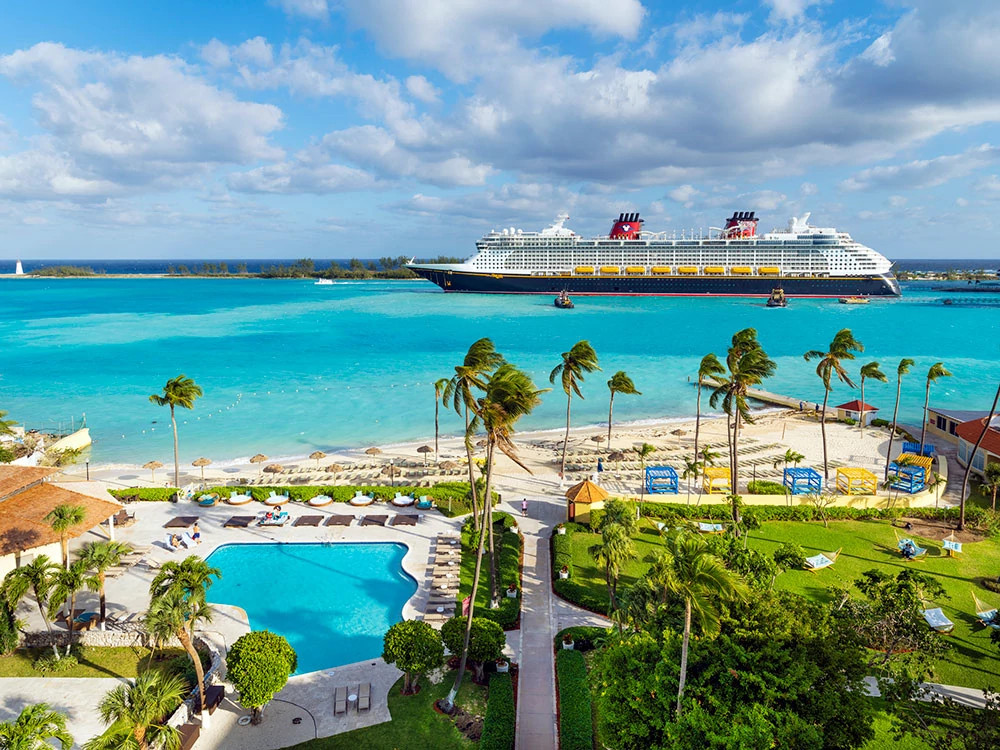 View across the British Colonial Hilton Hotel with Cruise Ship, Nassau, New Providence, Bahamas, Caribbean