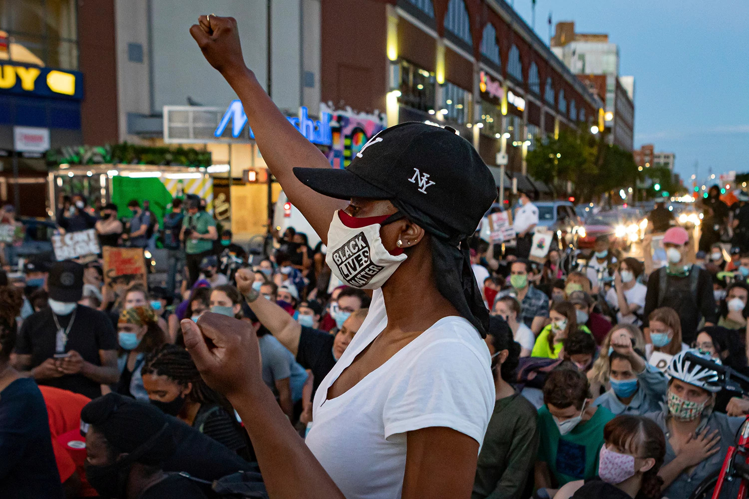The first day was Saturday, May 30, five days after George Floyd’s killing. I heard the marchers before I saw them. Roaring in the distance; the faint ringing of a cow bell announcing their advance. I went to the window. Hundreds of marchers, mostly young and of all races, were trooping up Flatbush Avenue, one of Brooklyn’s longest roadways, which runs all the way through the borough, from the base of the Manhattan Bridge to the sea at Jamaica Bay.