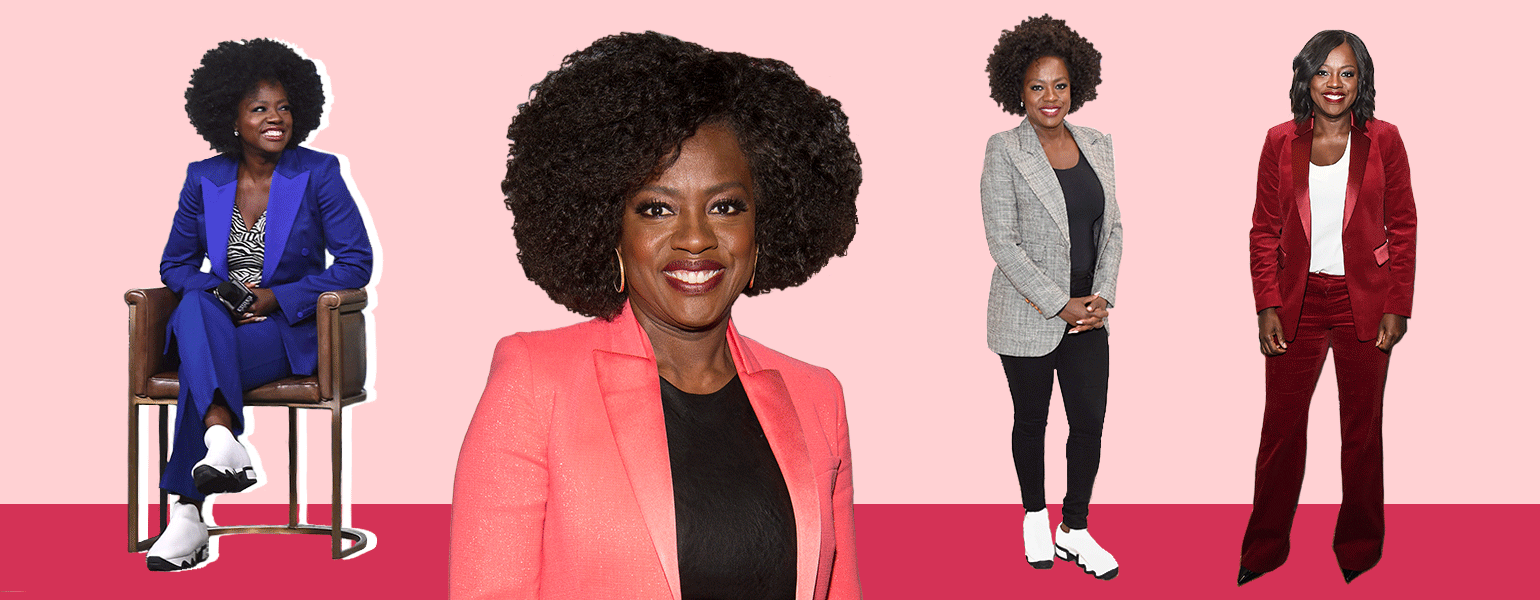 If you’re looking for a way to play it safe at work but still add some personality to your looks, we can take a note from Viola Davis’ closet. No stranger to a colored pantsuit, Viola is often spotted in a matching blazer and pant combo; each ensemble in an interesting color or fabric. Granted, Viola has a wide array of resources at her disposal to choose from, so she can wear the best of the best in business wear. If what she’s envisioning doesn’t exist, she can have someone make it for her.