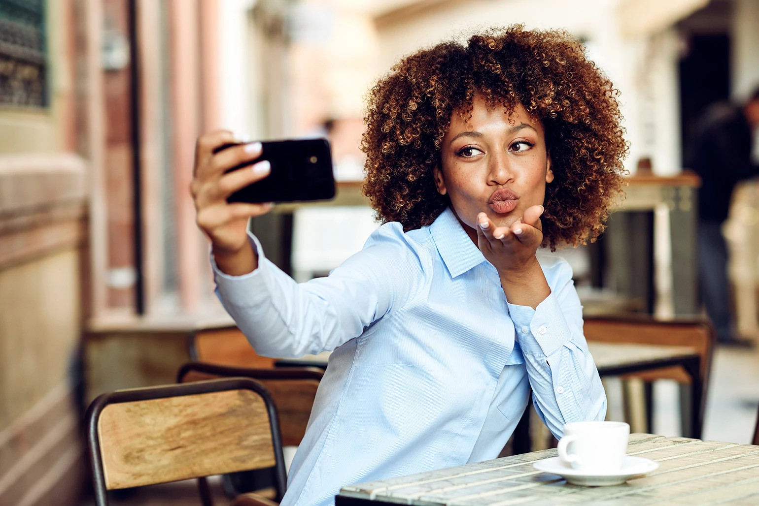 Good lighting makes the difference between looking tired and looking like you just came back from the spa. And when soft light hits your face just so, your skin instantly gets that “glow up” we all crave, no highlighter required. Lighting is even more important for women with darker skin tones who can disappear into the shadows when the light source is behind us. So, whether indoors or outdoors, make sure you face the sun or artificial light. Also, avoid being shot at midday, when the sun is at its highest and casts unflattering downward shadows. Instead, time your shots for the golden hour just before and after sunrise and sunset.
