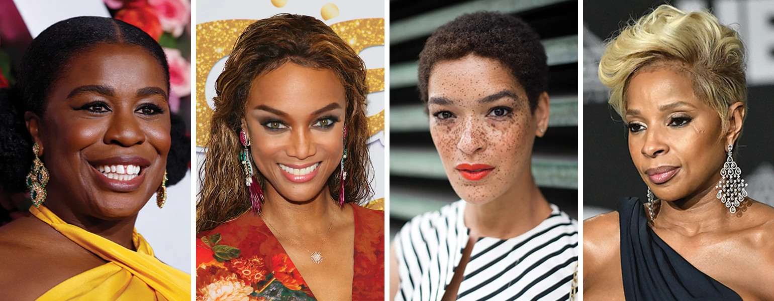 Back in the day, the supermodel with the famously prominent forehead wore long bangs and side-swept hairstyles to make it appear smaller. Now <em>America’s Got Talent</em> host <strong>Tyra Banks</strong> (44) is rightfully proud of her <em>fivehead</em> and sports swept-back styles to prove it.