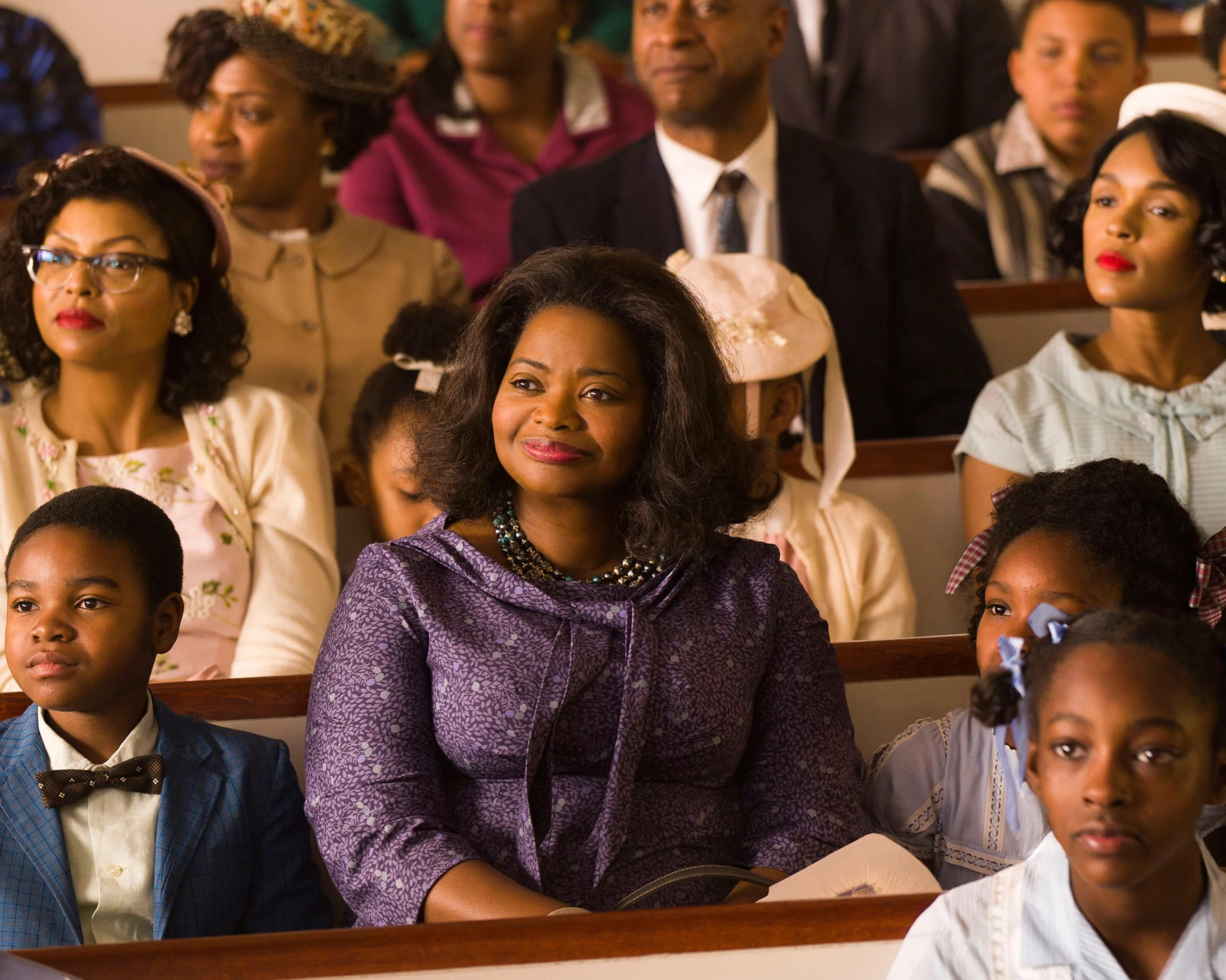 HIDDEN FIGURES, Taraji P. Henson (eyeglasses), Octavia Spencer (center), Janelle Monae (back