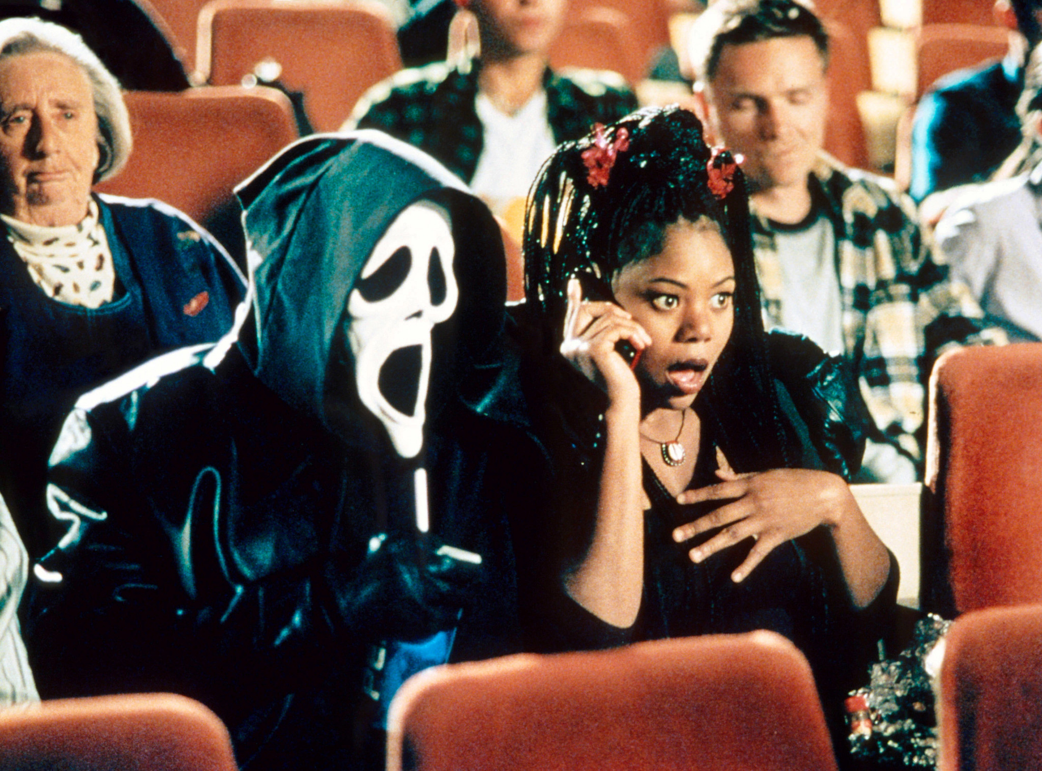 The versatile Hall showed off her physical comedy prowess opposite costars Marlon Wayans, Shawn Wayans, and Anna Faris, as gutsy round the way girl Brenda in Scary Movie, a farcical spoof on slasher movies like Scream and I Know What You Did Last Summer.