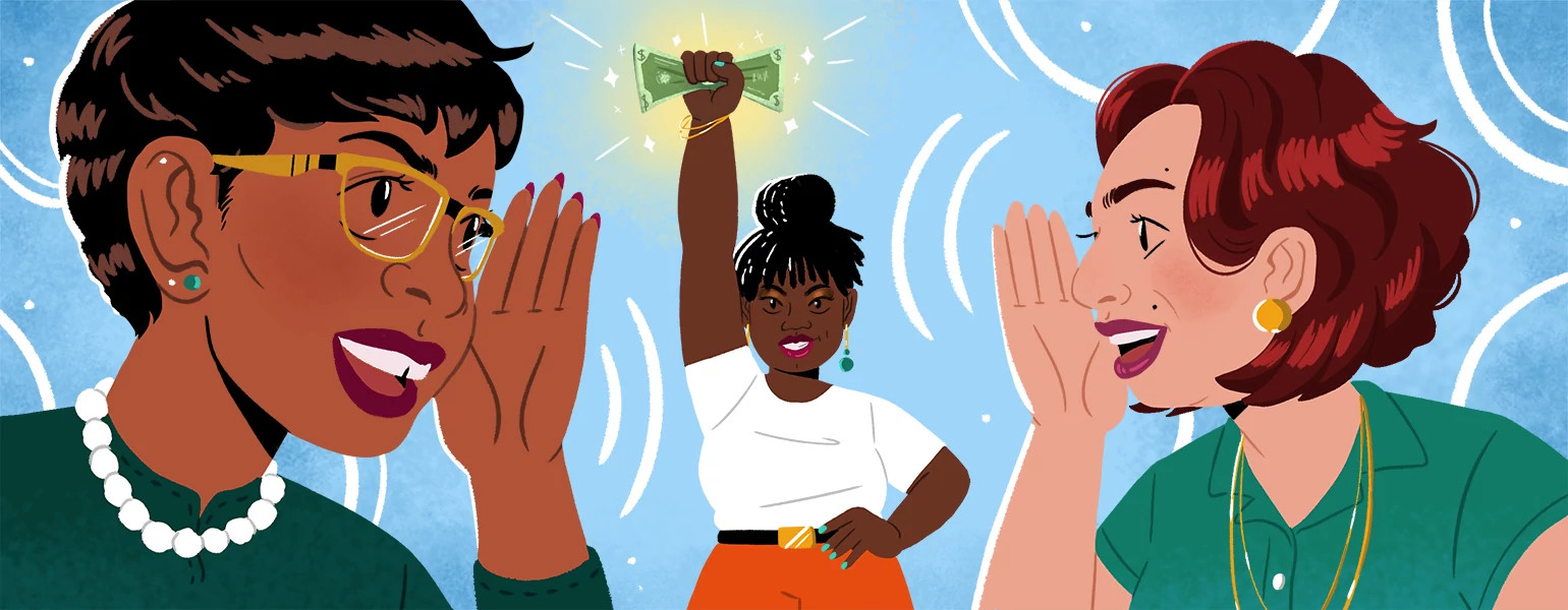 And don’t forget your girlfriends. Get the conversation started by sharing the salary negotiation talks you’ve had with potential or current employers to gauge their perspectives on what’s fair pay in the marketplace. If you’re still shy about talking dollars and cents, ask them to share their nonmonetary benefits instead of cash compensation, or use anecdotes about the figures you’ve seen in your workplace or industry to get their feedback or advice. “That helps [your friends] go back and say, ‘Hey, I got this offer I don’t like, but I won’t get more unless I ask. What figure should I be looking for?’ ” Scott-Payne says.